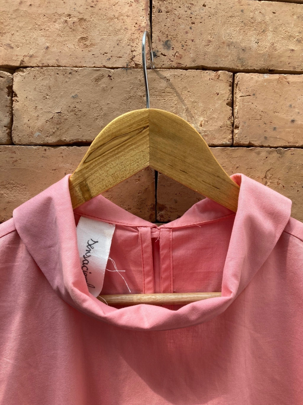 Apresentamos a Blusa Amanda, uma peça única feita em algodão, que conta com uma golinha dobrada e um detalhe especial no fechamento - sem mangas. Os acabamentos manuais garantem que cada unidade seja exclusiva, refletindo a atenção e o carinho envolvidos em sua produção.