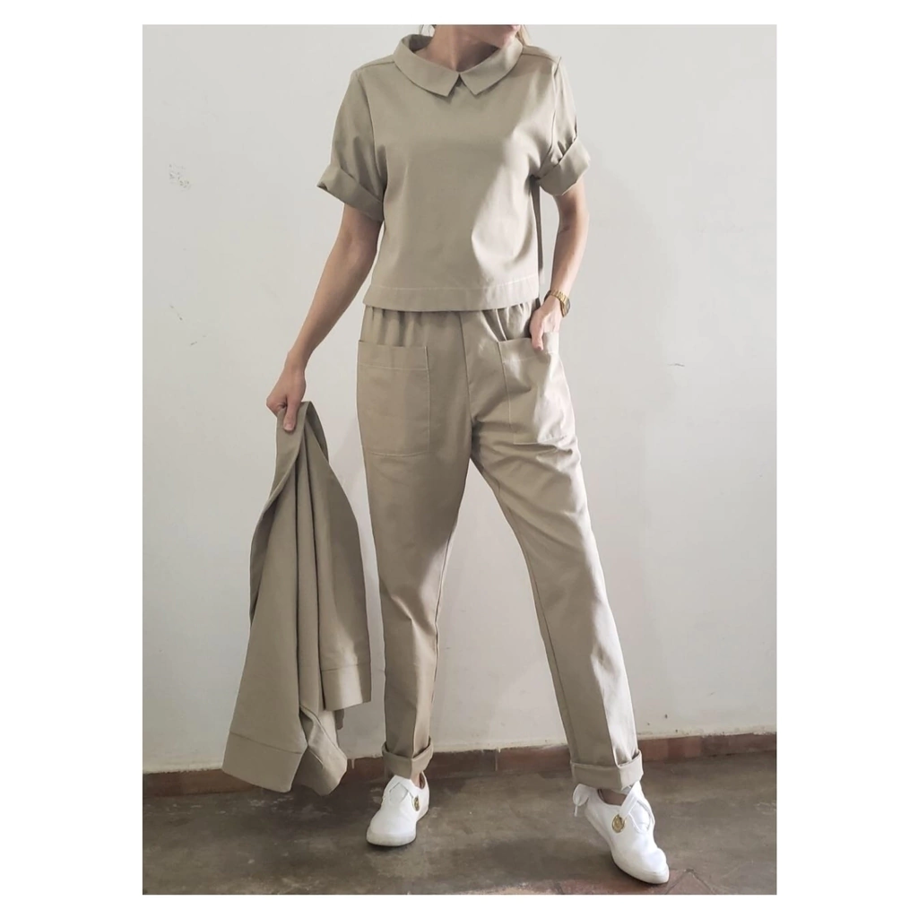 Esta elegante blusa em algodão apresenta um fechamento por botões, unindo conforto e sofisticação. Produzida sob encomenda, cada peça é única, resultado de acabamentos manuais que garantem um toque especial.