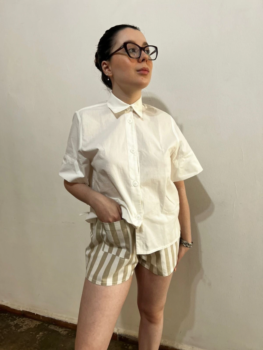 Camisa Manga Curta – Elegância e Conforto em Algodão Descubra a camisa de modelagem ampla com manga curta, perfeita para quem busca estilo sofisticado e conforto. Confeccionada em algodão de alta qualidade, apresenta botões de casinha e uma gola delicada que valoriza o visual. Seu corte mais quadradinho oferece um caimento moderno e elegante, ideal para ocasiões casuais e formais. Aposte nesta peça versátil que une charme e praticidade com a exclusividade que seu guarda-roupa merece.