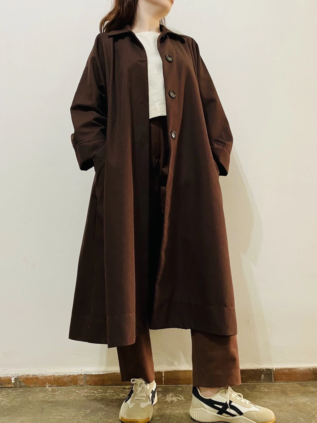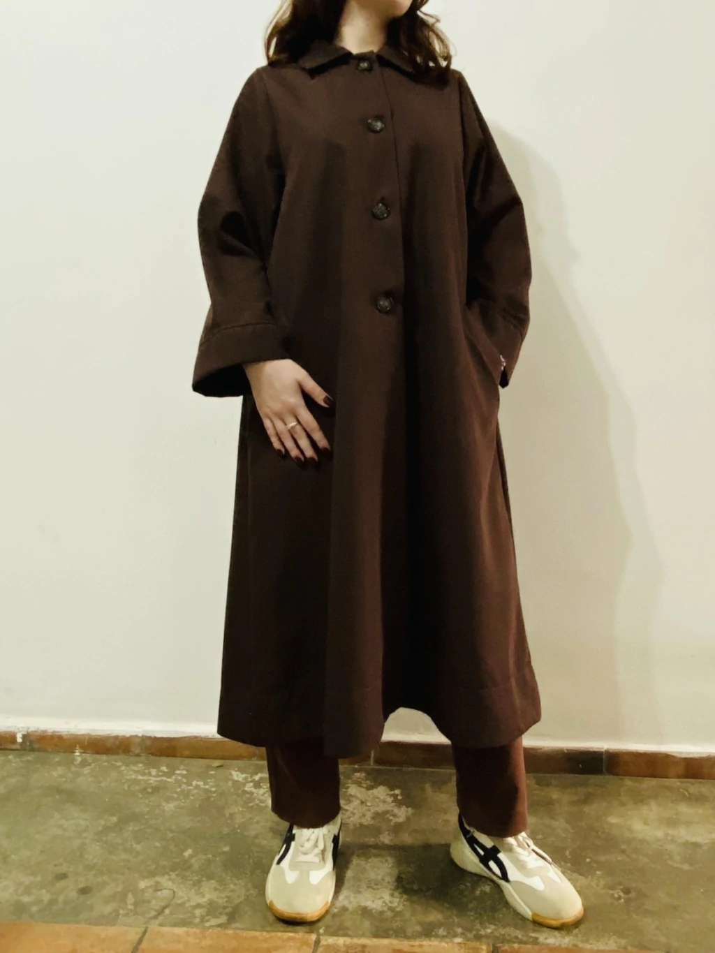 Descubra o charme do casaco amplo longo abotoado em gabardine, perfeito para quem busca estilo e conforto. Com botões de casinha delicados, pregas elegantes atrás e bolsos confortáveis, ele une praticidade e sofisticação. Uma peça única, feita para envolver você com elegância em qualquer ocasião. Invista em qualidade e design atemporal!