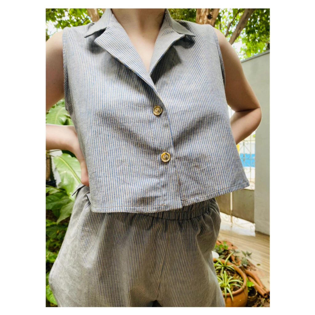 acompanha blusa com gola camisa e shorts tipo ciclista