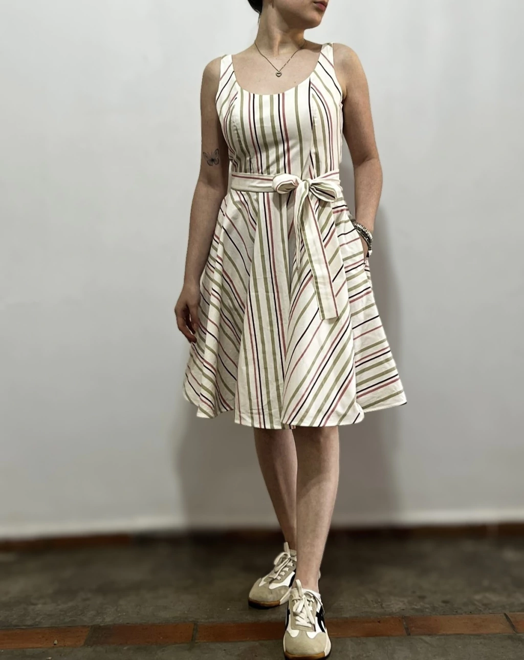 Vestido Beleza: a combinação perfeita entre conforto e estilo para o seu dia a dia. Confeccionado em algodão de alta qualidade, possui bolsos embutidos práticos e um peito forrado que garante acabamento impecável. Acompanha um cinto no mesmo tecido para valorizar sua silhueta, enquanto as costas decotadas adicionam um toque de elegância e frescor. Uma peça versátil, ideal para quem busca beleza e funcionalidade em um só vestido.