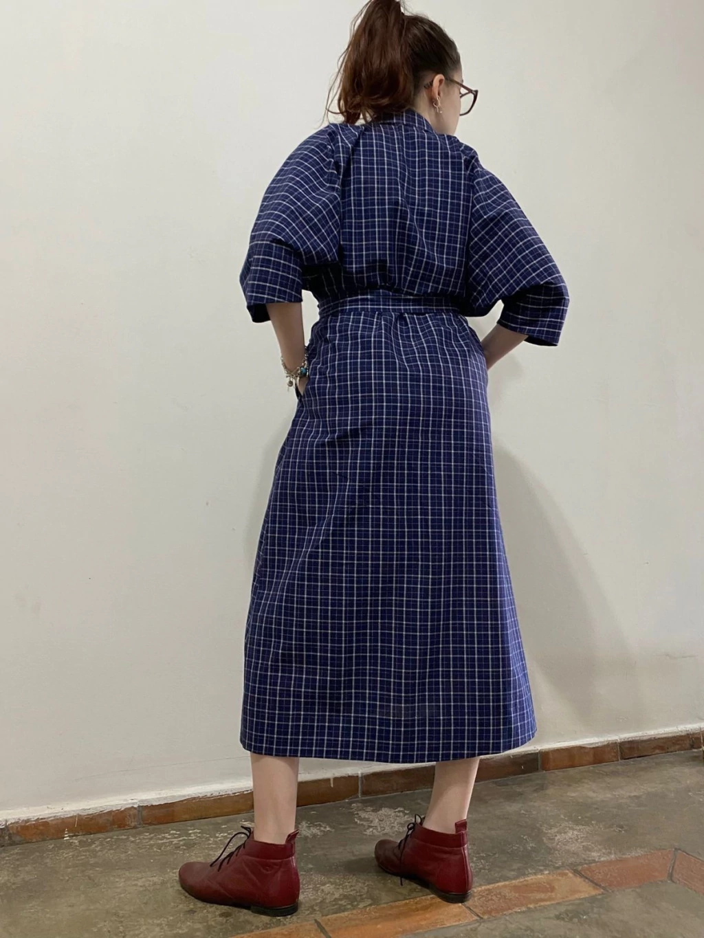 Vestido com manga raglã e gola camisa